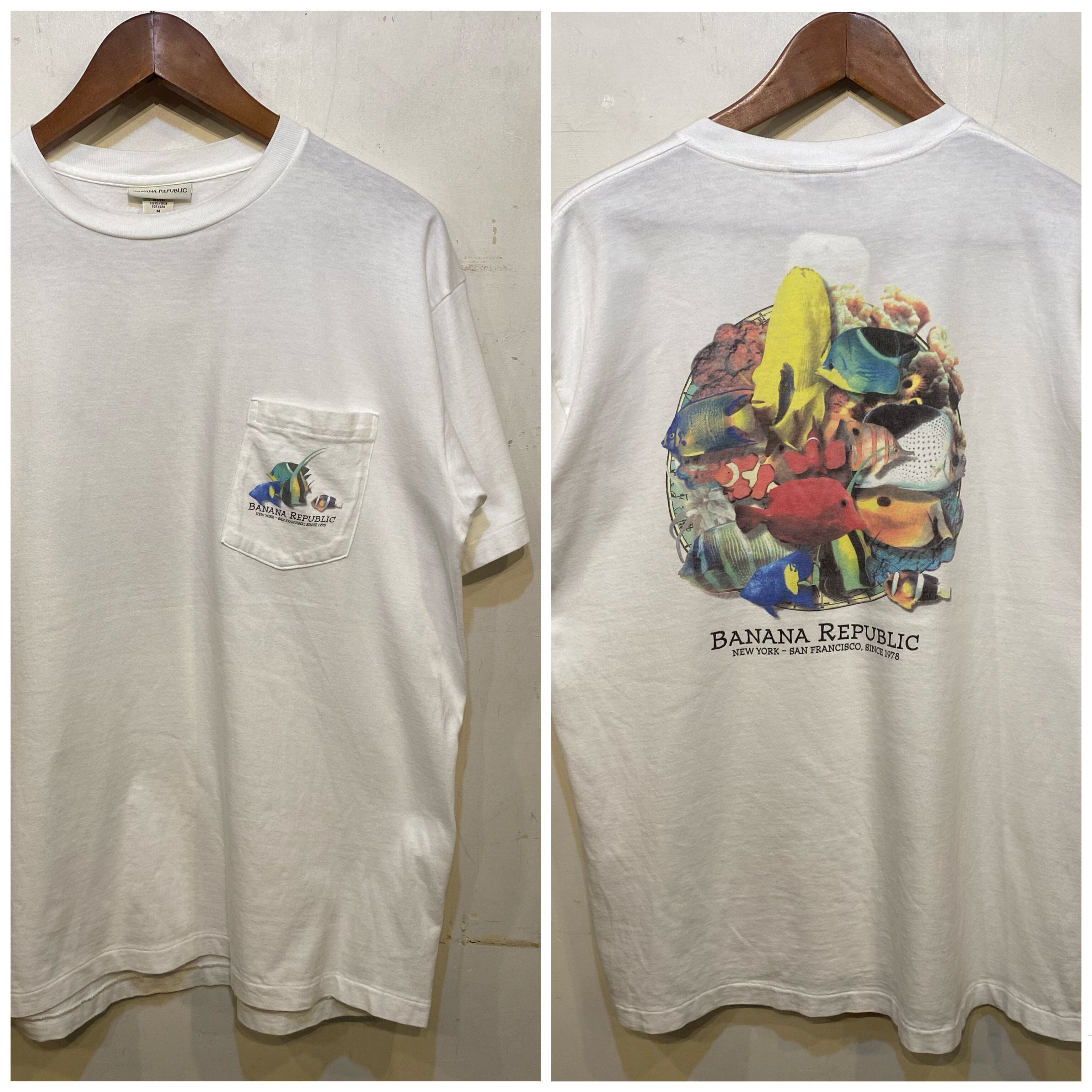 90's USA製 BANANA REPUBLIC ポケ付きお魚T