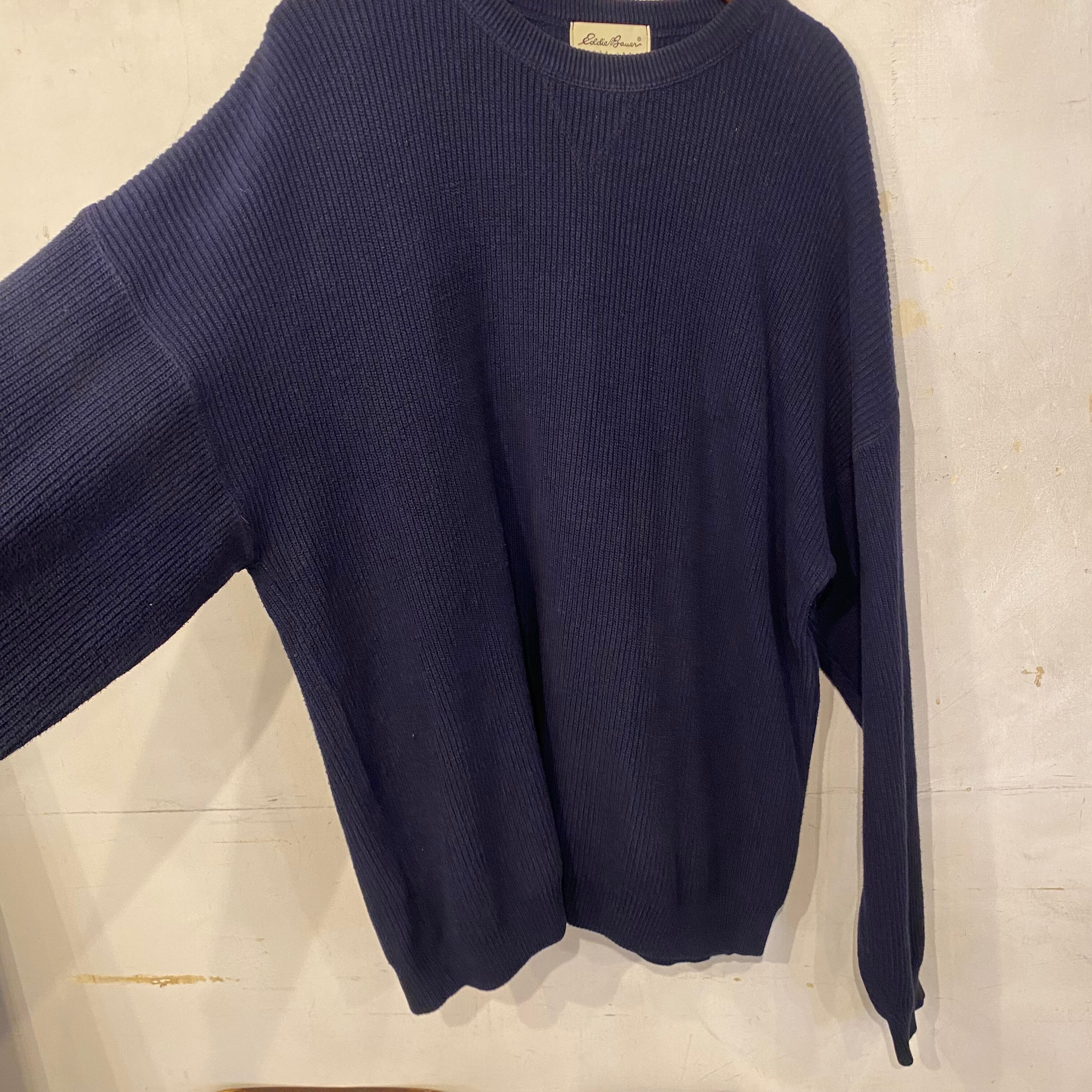 90's Eddie Bauer USA製 前Vネイビー❗️コットンニット