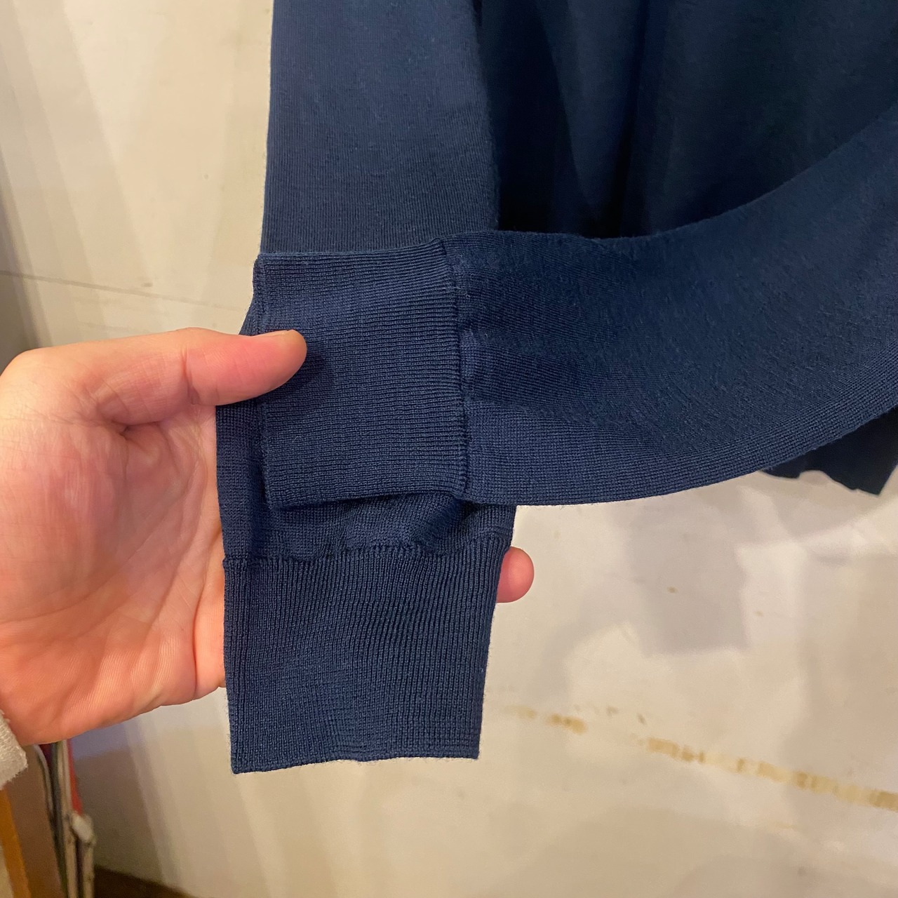 ネイビーモックネックニット