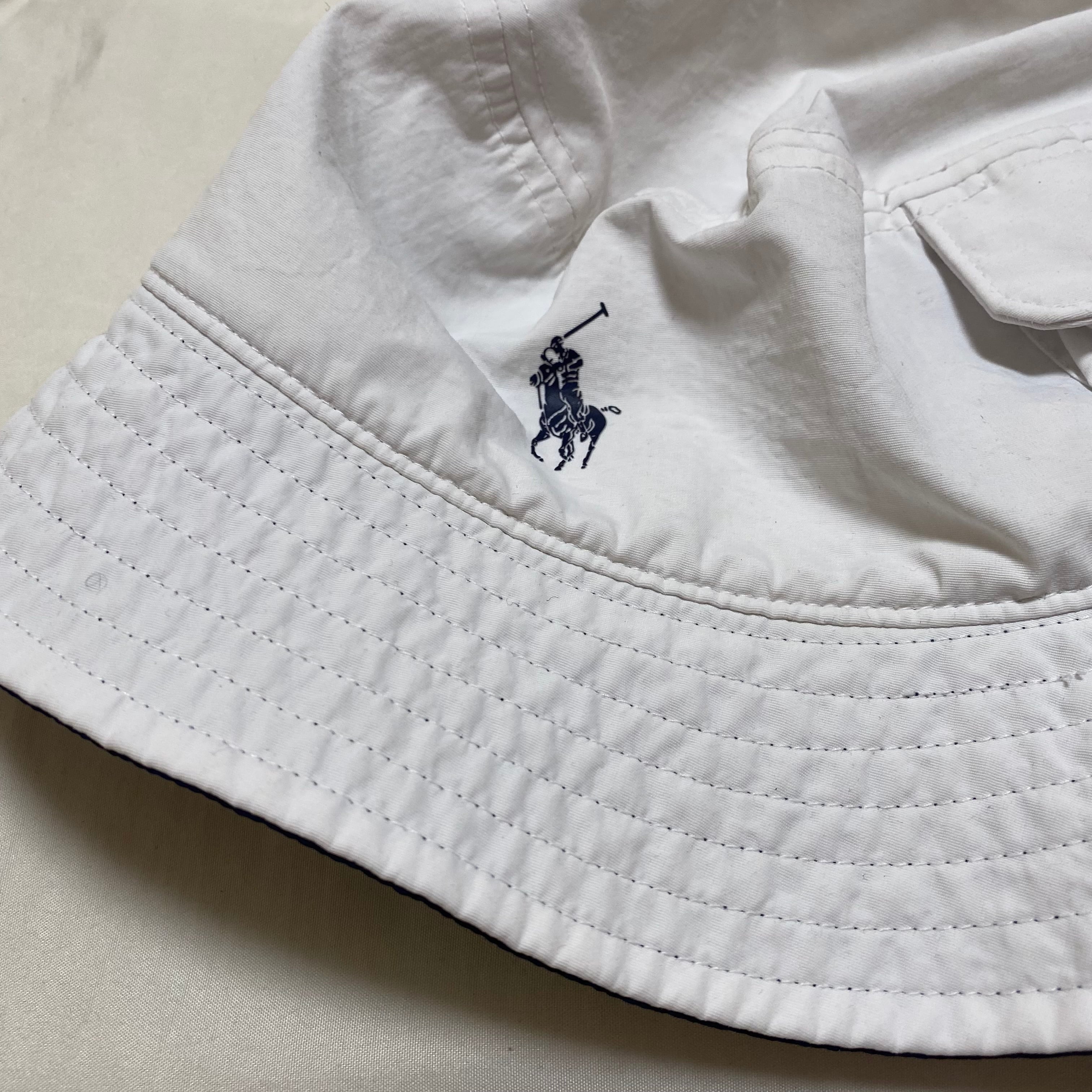 【極美品⭕️】Ralph Lauren ポケ付き白ナイロンバケットハット