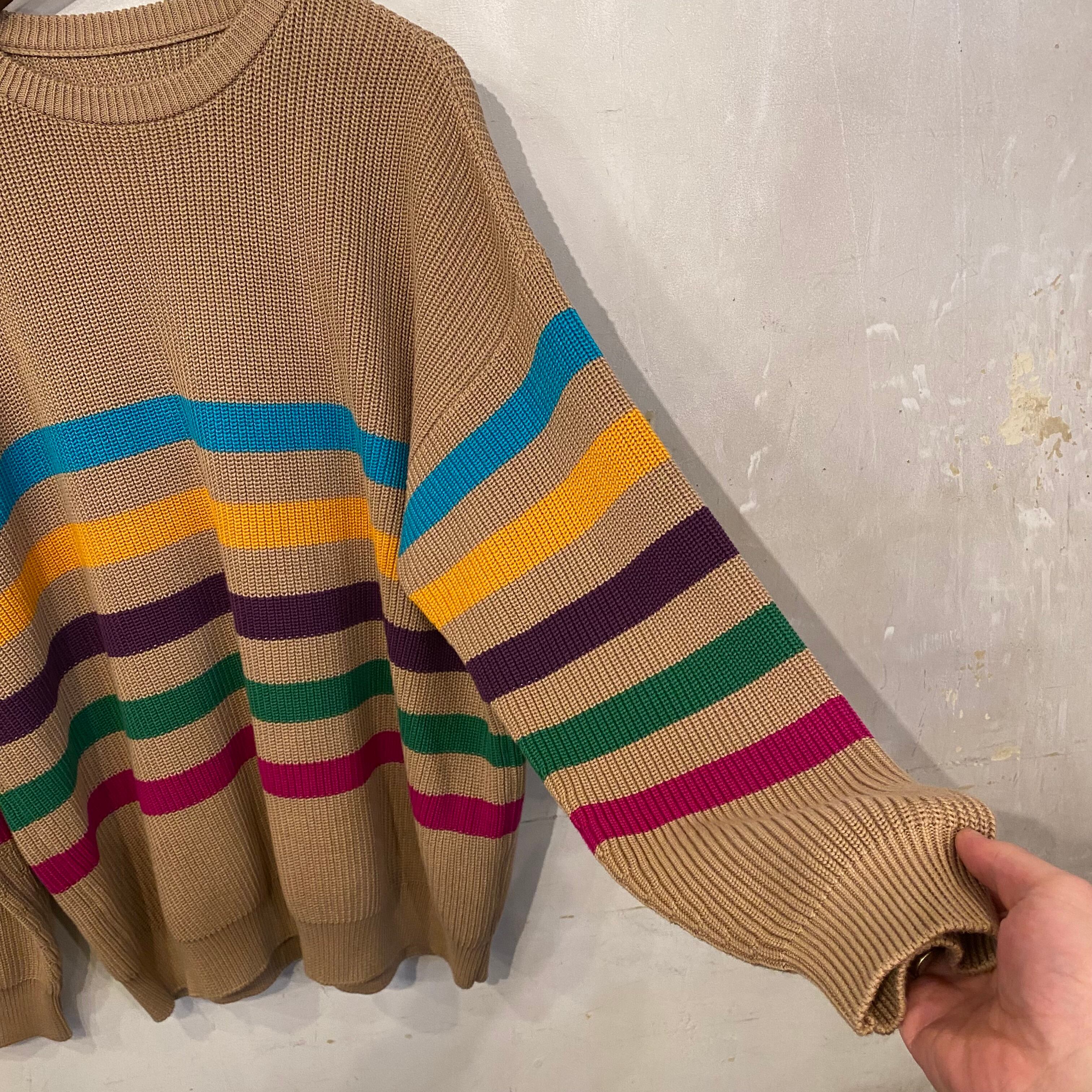 ベージュベースにこのマルチカラーボーダー