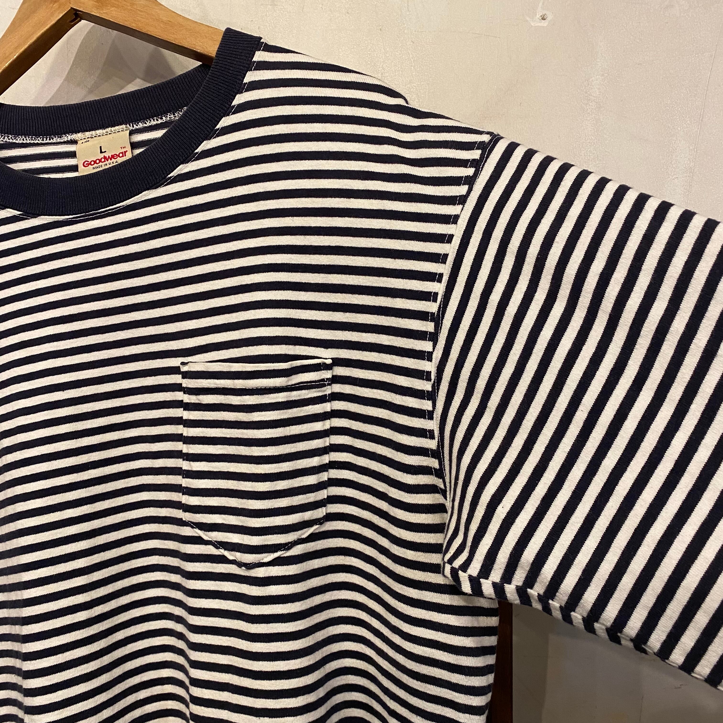 90s Goodwear USA製 L ポケ付きボーダーロンT