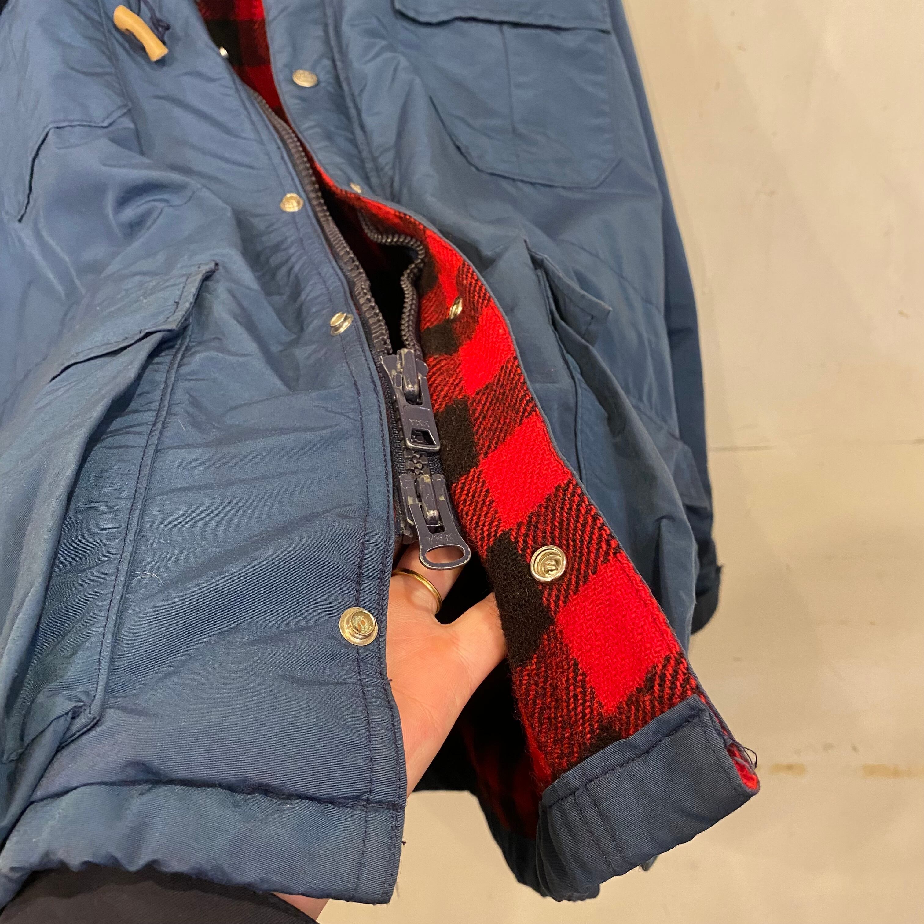 XL ネイビー&赤黒ブロック‼️ 80's USA製 LL Bean